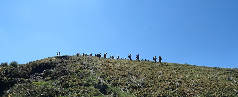 Les touristes sont de sortie, un groupe d'une bonne trentaine de personnes déboule du sommet du puy.
