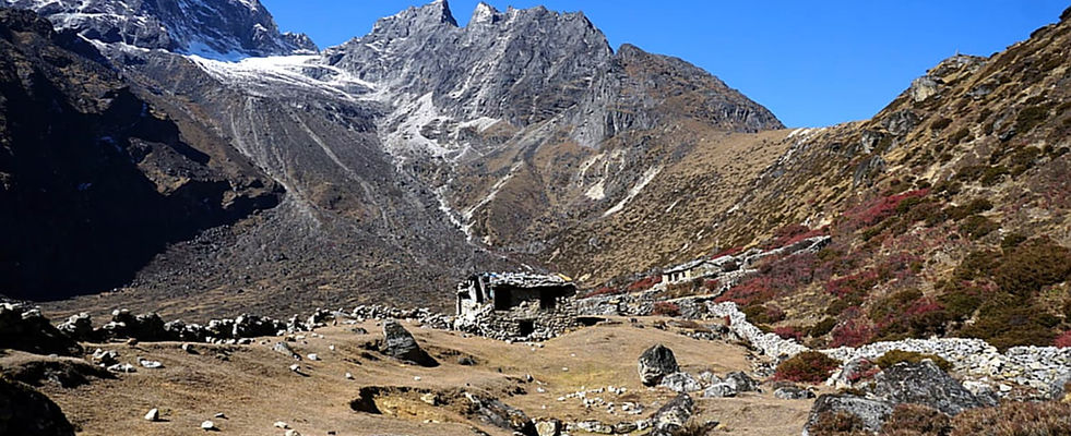 Les collines et vallées sont occupées par des kharka (pâturages d’été en altitude) où sont construites des yersa (maison d'été rudimentaire qui abrite les gardiens sherpas de yaks).