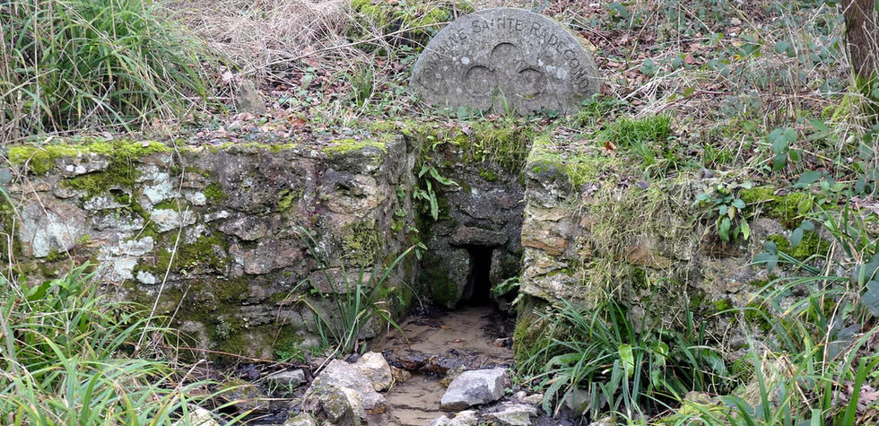 Nous faisons un tour partiel sur le sentier des philosophes, en passant devant la fontaine de Sainte-Radegonde près de laquelle se trouvait le prieuré de Notre-Dame-de-Bois-Saint-Père. Au XVIème siècle, des processions de pèlerins et malades (maladies de la peau, stérilité) venaient à cette source pour prier. Et le girondin Bosc, dont nous verront le cimetière un peu plus loin, a trouvé refuge ici pendant la Terreur de 1793.