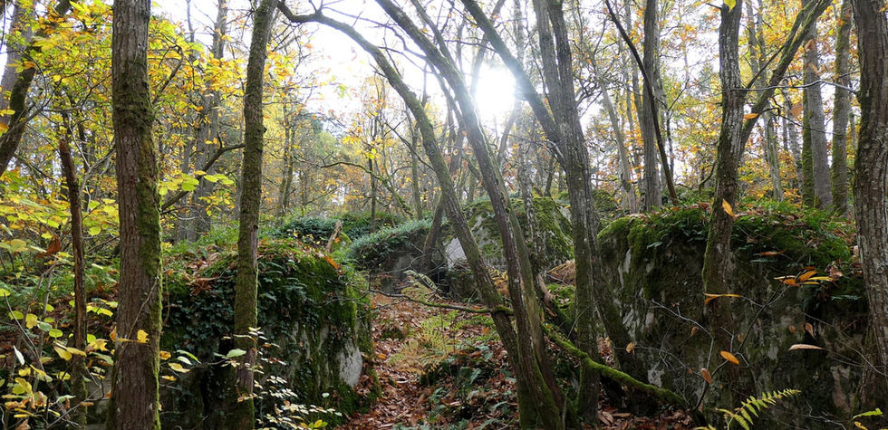 À la sortie de Ballancourt, nous empruntons un sentier boisé qui nous mène au sommet du Mont, une mini colline semée de rochers.