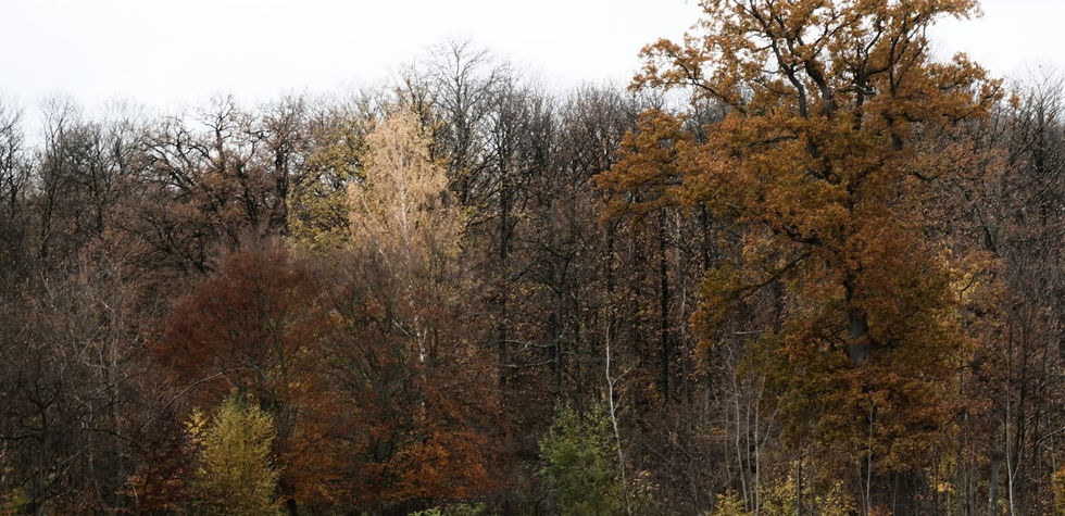 Dans une clairière, une sculpture interroge la fragilité humaine face à la nature: des têtes de chênes coupées et renversées, en équilibre instable, entourent un jeune ginko biloba amené à prendre le relais de l'œuvre éphémère.