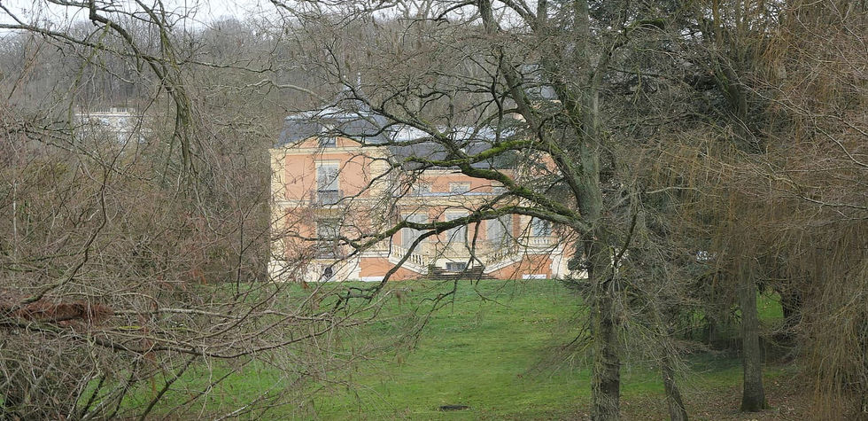 Je poursuis le long de la Bièvre, dont le cours est retravaillé, sur un chemin parfois très détrempé, vers Jouy-en-Josas, et la Maison du Pont de Pierre, demeure de Christophe-Philippe Oberkampf, qui s'y est installé en 1760 à l'âge de 22 ans et a créé, dès 1761, l'impression de la toile de Jouy. Dans le jardin de la maison trônent les monuments funéraires dédiés à Christophe-Philippe Oberkampf et sa famille.