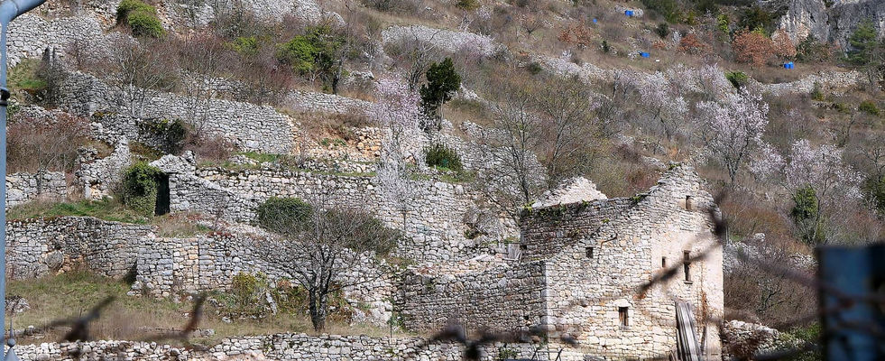 Le village est bordé par des faïsses: terrasses soutenues par des murets de pierres sèches, construites par des moines bénédictins, pour accueillir des plantations diverses.